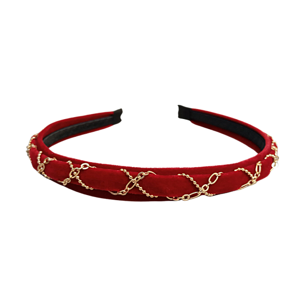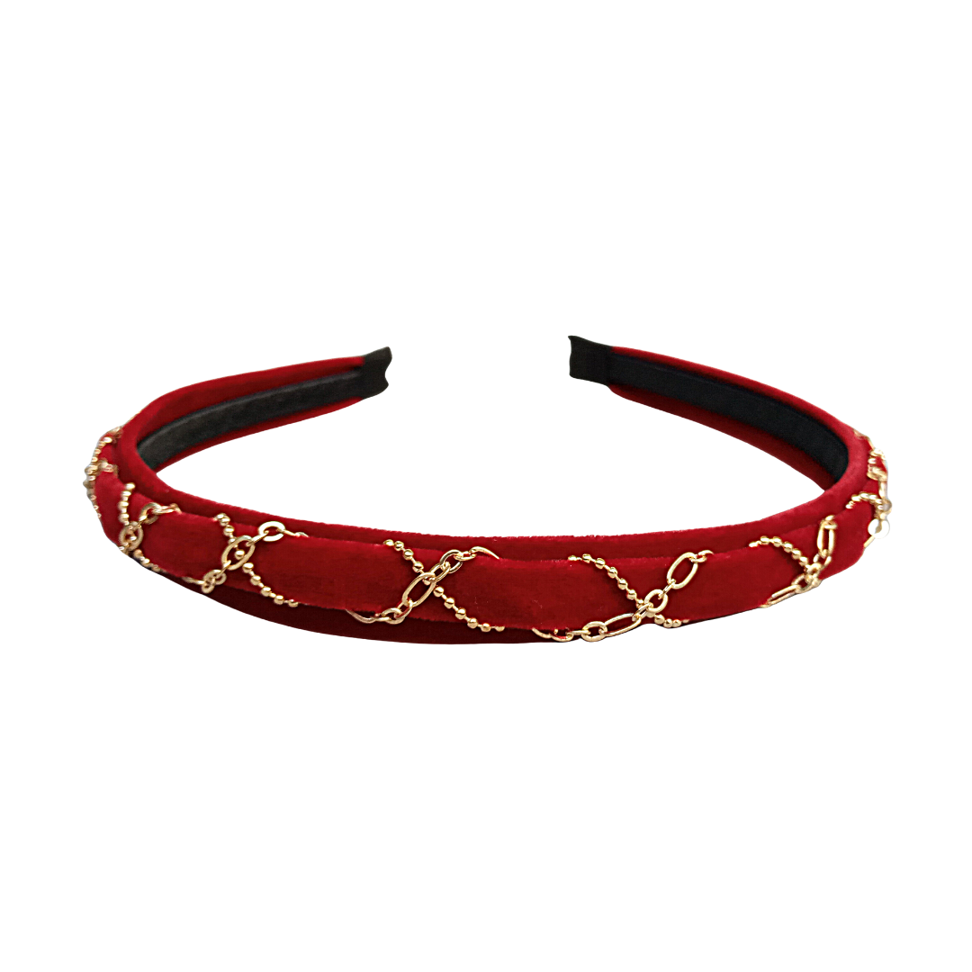 Tiara feita com veludo realeza vermelho adornada com correntes!